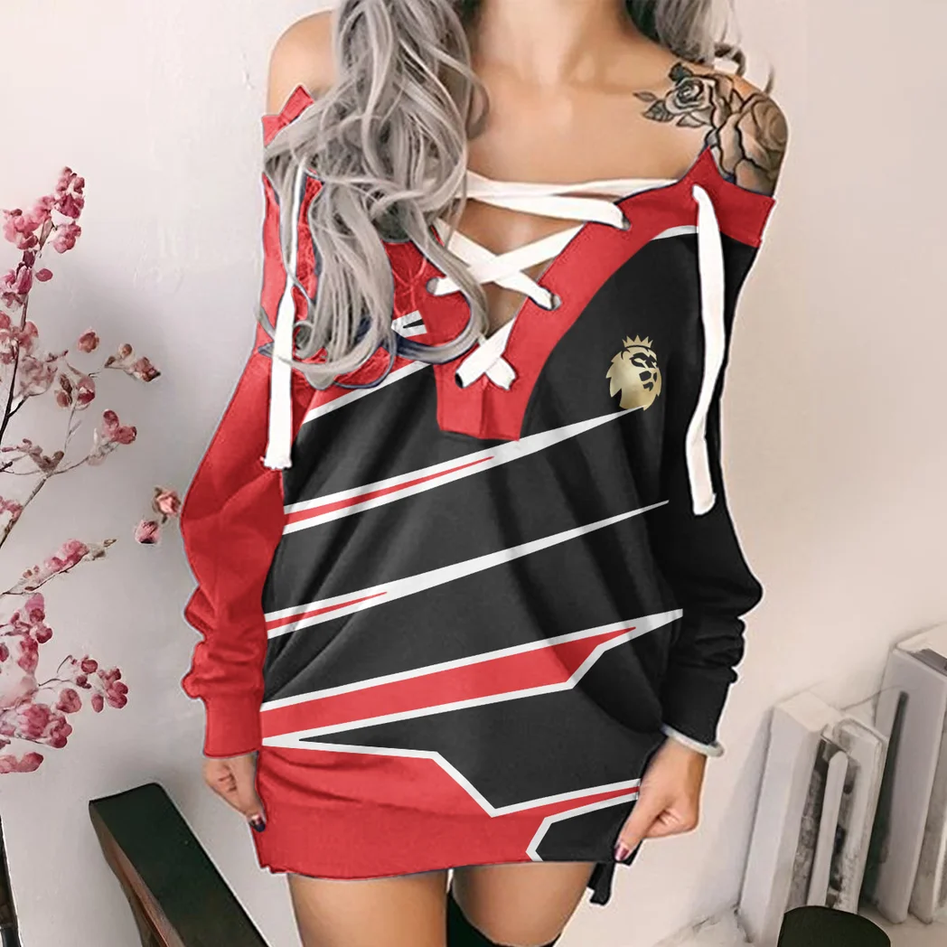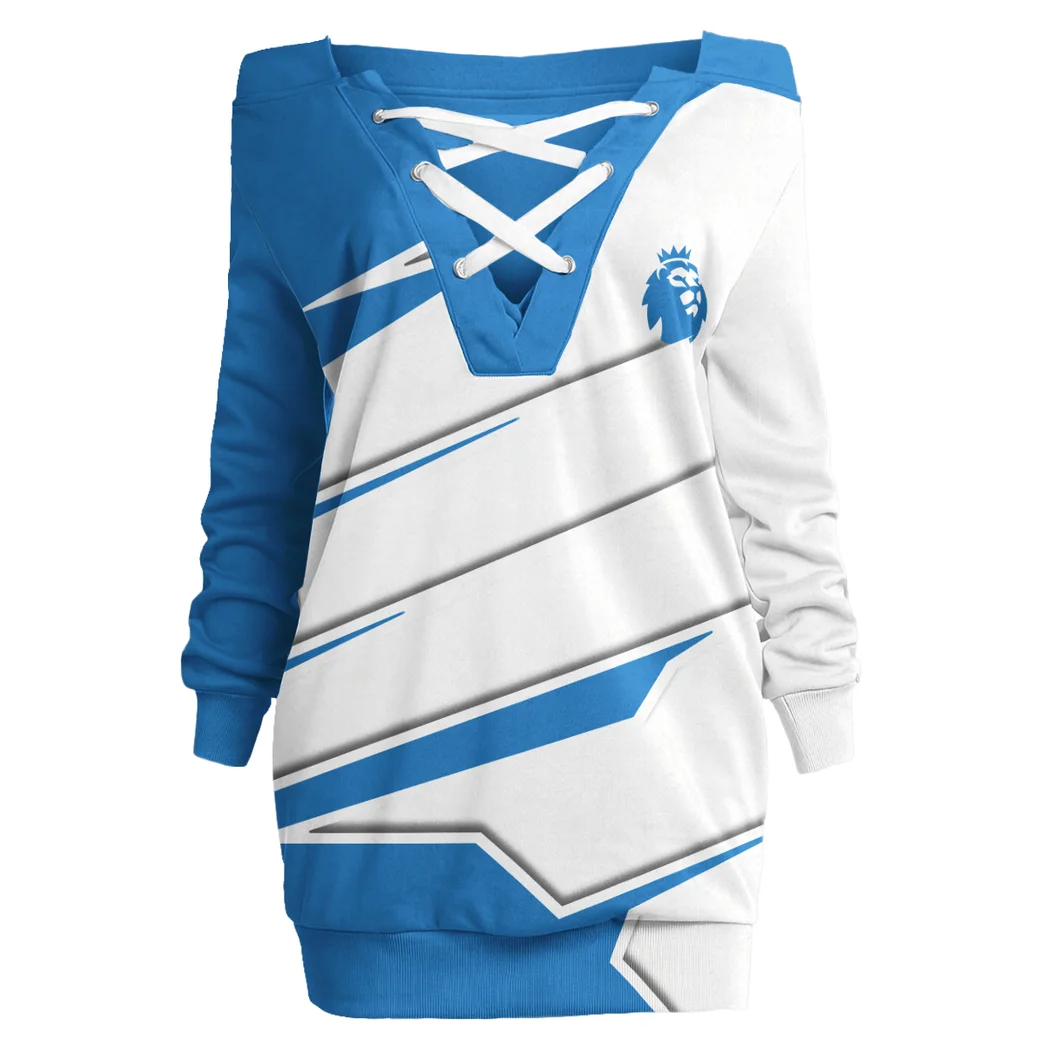 Show your passion with confidence and flair in this V-Neck Lace-Up Pullover Sweatshirt Dress – a must-have for fashion-forward women who love sporty style. Perfect for casual outings, watch parties, or laid-back weekends, this long sweatshirt dress blends athletic attitude with feminine charm, making it a standout piece in any wardrobe.